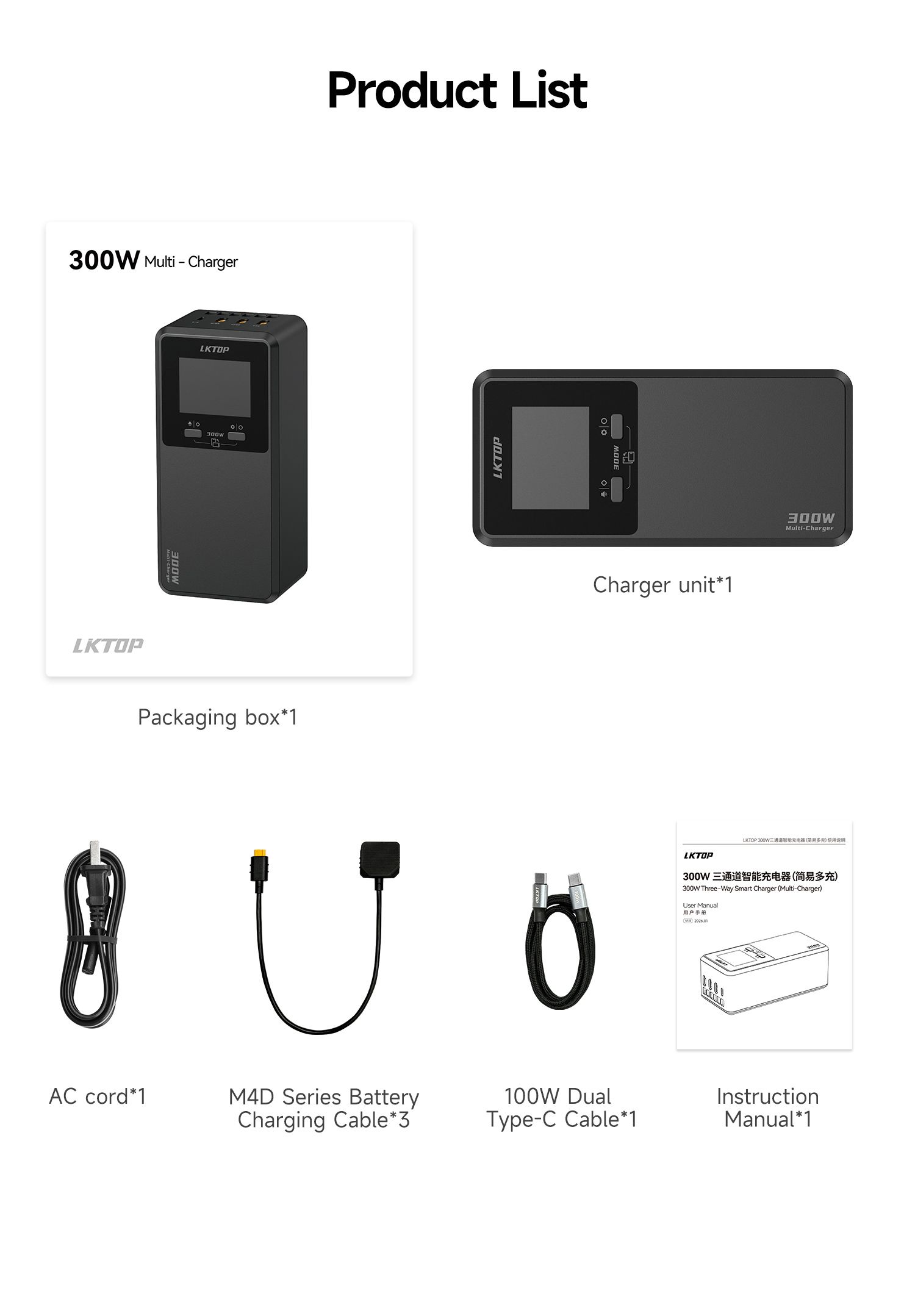 LKTOP 300W - Matrice 4D series - 3fach Lader